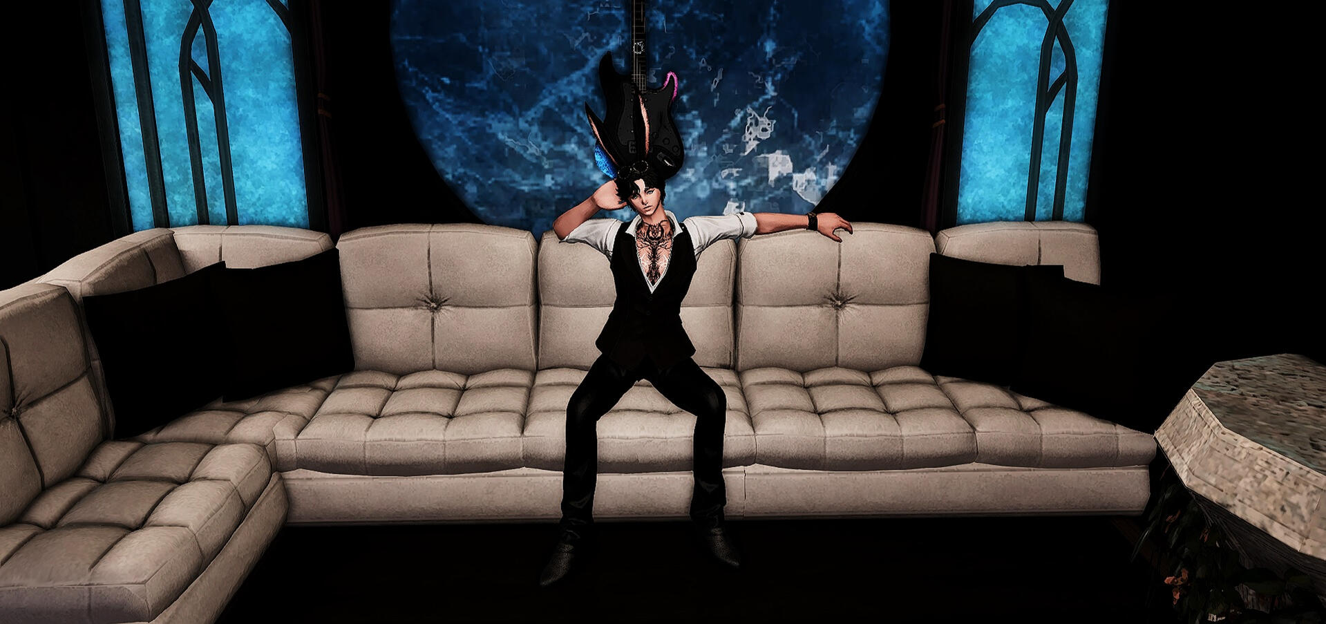 Sleek, spacious and executive. Furnished with clean and smart white sofa, paired with a wall-mounted backdrops like guitars, The Seat of Arcan is perfect for a group that is searching for that formal but with swagger vibe.